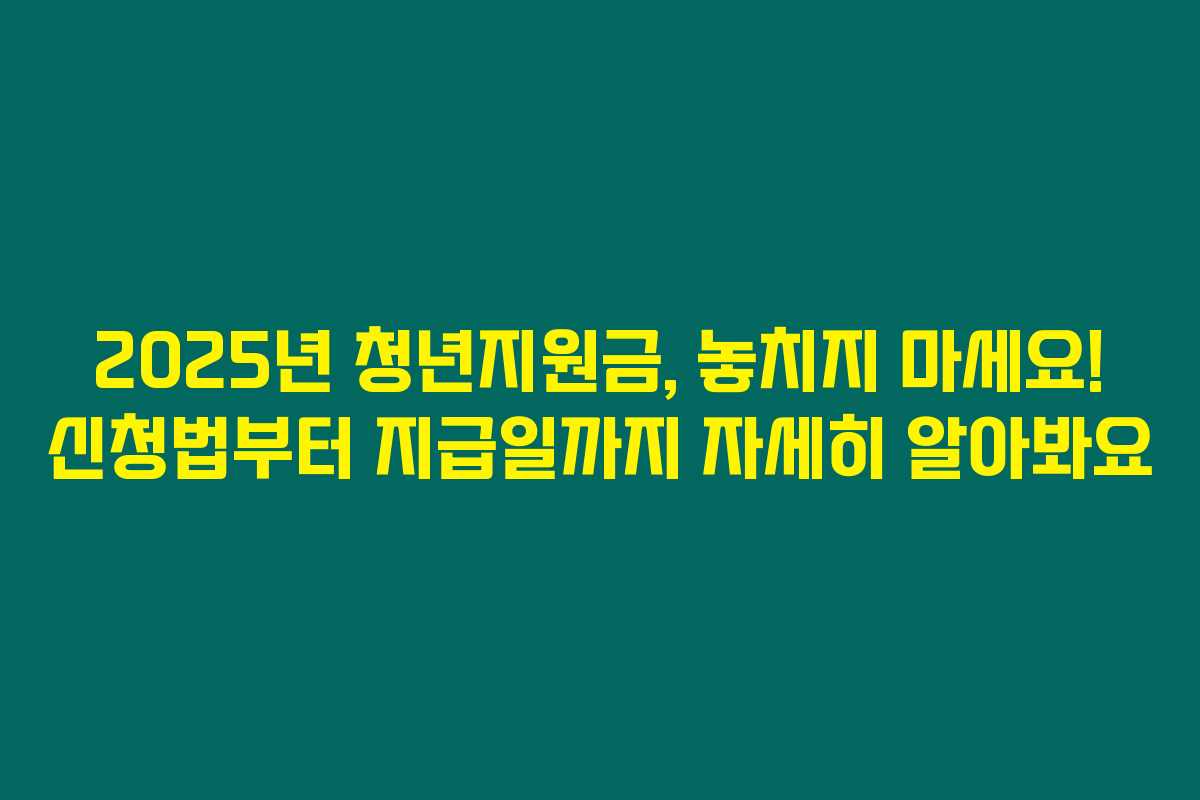 2025년 청년지원금 신청을 놓치지 마세요. 빠르게 신청하셔서 혜택을 누리세요!