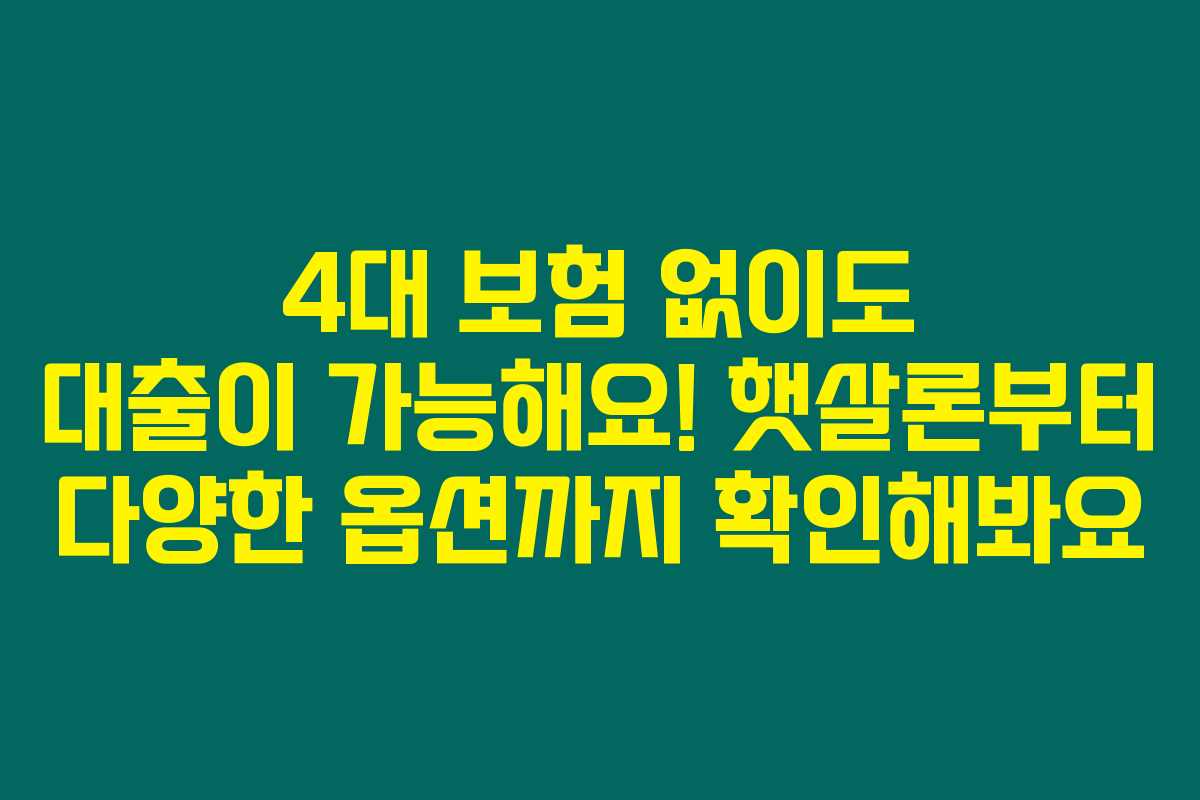제가 알아본 바로는 4대 보험에 가입되어 있지 않거나 가입 기간이 짧은 분들도 대출을 받을 수 있는 방법이 많답니다. 특히, 소득이 낮거나 신용등급이 낮은 분들을 위한 정부 지원 상품인 햇살론이 대표적인 예시인데요. 아래를 읽어보시면 4대 보험 없이 대출 받을 수 있는 다양한 옵션과 조건을 알아보실 수 있을 거예요.
