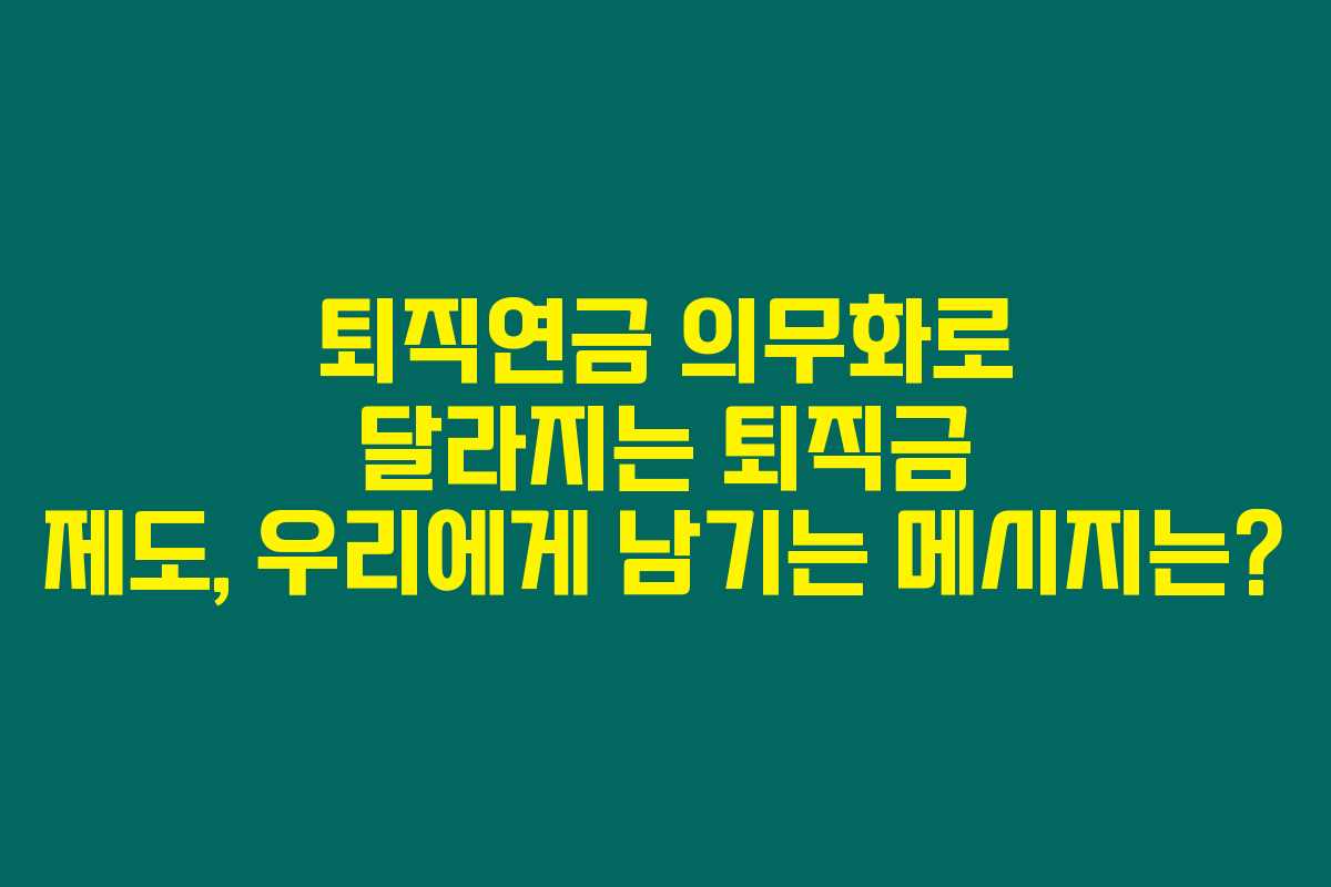 퇴직연금 의무화는 단순한 제도 변경 이상으로, 우리 사회 전반에 영향을 미치는 중요한 변화입니다. 조정되는 사회구조와 노동시장에서의 변화가 근로자들에게 더 안정된 노후를 보장하는 계기가 될 수 있기를 바랍니다. 앞으로의 변화를 잘 지켜보며, 적극적인 노후 준비를 해야겠지요.