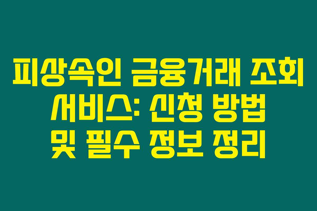 제가 직접 경험해본 결과로는, 피상속인 금융거래 조회 서비스는 상속인이 고인이 되신 가족들의 금융 자산을 찾는 데 있어 매우 유용한 방법입니다. 여러 금융기관에 흩어져 있는 자산을 간편하게 확인할 수 있다는 점에서 특히 편리하죠. 아래를 읽어보시면, 이 서비스를 온라인 및 오프라인으로 어떻게 신청할 수 있는지 자세히 알아볼 수 있습니다.