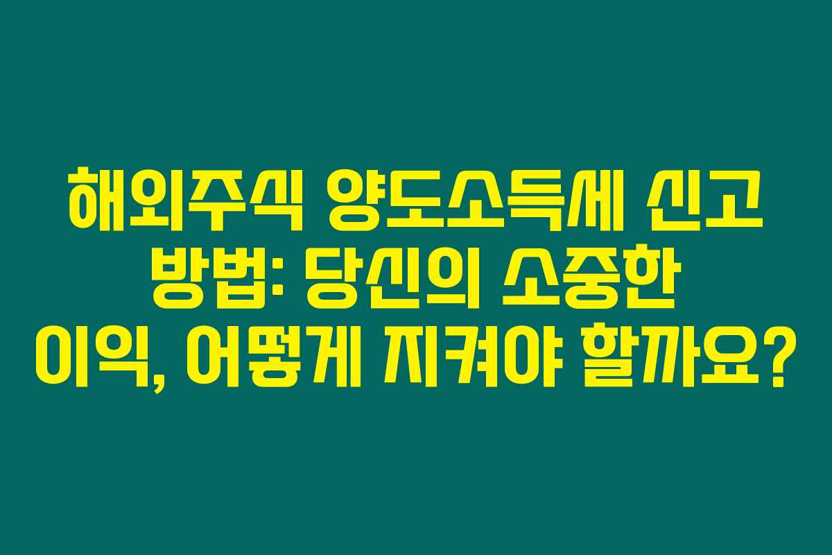 해외주식 양도소득세 신고 방법: 당신의 소중한 이익, 어떻게 지켜야 할까요?