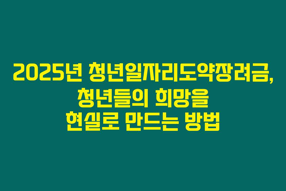 2025년 청년일자리도약장려금을 통해 청년들이 보다 넓은 기회를 가질 수 있도록, 모든 분들이 잘 준비하시기를 바랍니다. 이 제도가 여러분의 미래에 긍정적인 영향을 미치기를 진심으로 바랍니다.