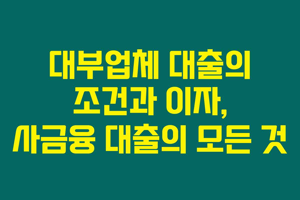 대부업체 대출은 다양한 조건과 이자율을 통해 많은 선택지를 제공하지만, 개인의 신용 상황에 따라 신중하게 선택해야 합니다. 법적으로 등록된 업체를 통해 안전하게 대출을 진행하시길 권장드립니다. 다양한 금융 옵션을 비교하여 여러분에게 맞는 최적의 선택을 하시길 바랍니다.