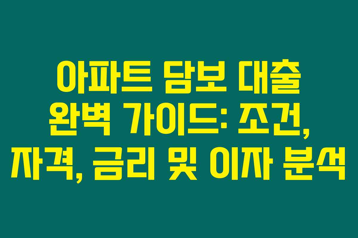 - 보험 가입: 아파트 담보 대출을 이용할 경우 담보물에 대한 보험이 요구될 수 있습니다.