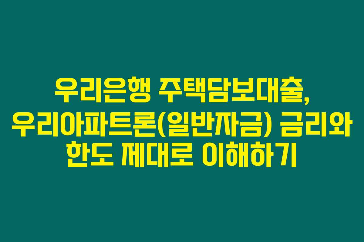 태그: 우리은행 주택담보대출, 우리아파트론, 금리, 한도, 대출조건, 주택담보대출, 우대금리, 중도상환