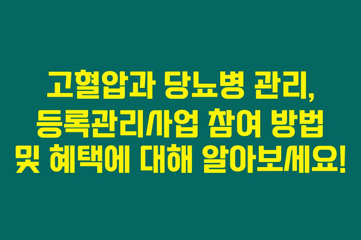신청 방법이 간단하면서도 유익한 고혈압·당뇨병 등록관리사업은 삶의 질 향상에 큰 도움이 될 것입니다. 꼭 체크해보세요!