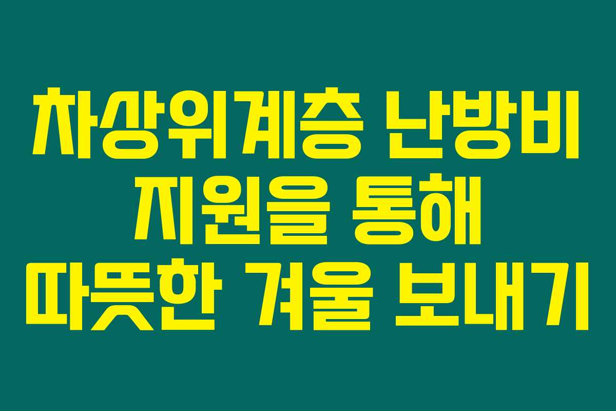 겨울철이 찾아오면 난방비 부담이 늘어나 많은 가정에서 힘들어지는데요. 특히 차상위계층 가구는 더 큰 경제적 부담에 직면하게 됩니다. 제가 직접 알아본 바로는, 정부에서는 이러한 차상위계층을 위한 난방비 지원 제도를 운영하고 있어, 이 제도를 통해 겨울철 난방비 걱정을 덜 수 있습니다. 아래를 읽어보시면 이 제도의 신청 방법과 지원 대상에 대한 자세한 정보를 얻을 수 있습니다.