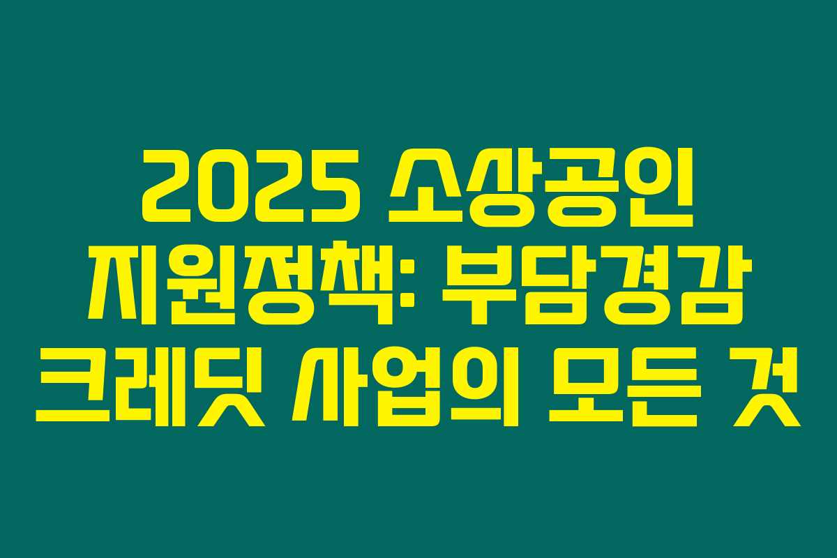 2025 소상공인 지원정책: 부담경감 크레딧 사업의 모든 것
