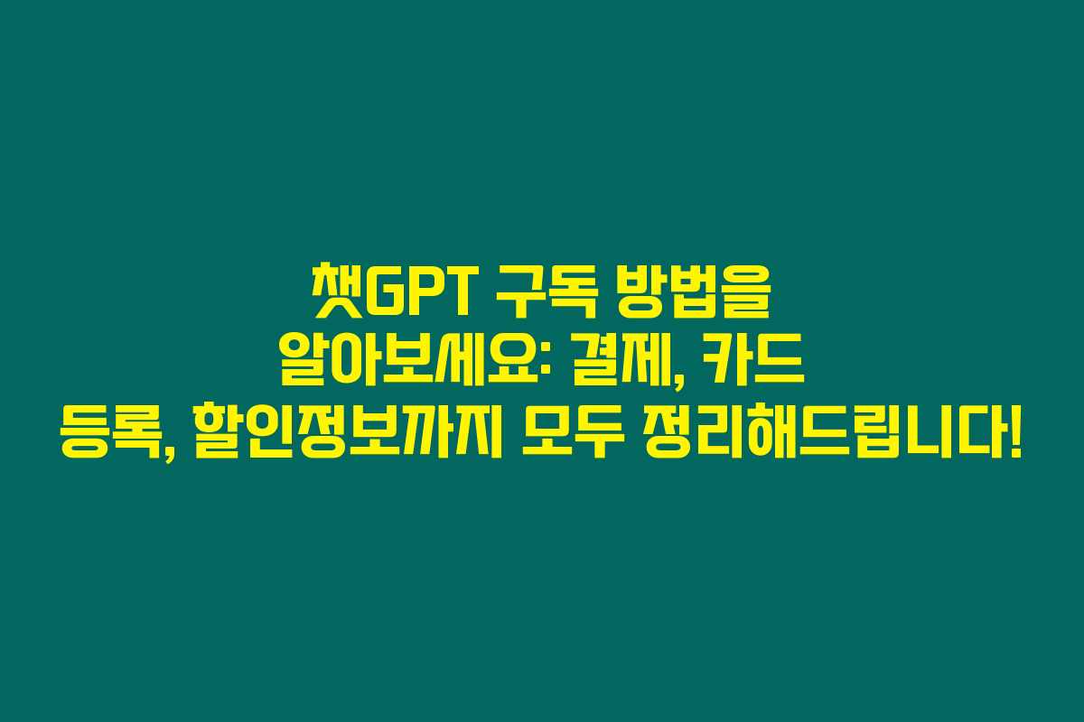 챗GPT 구독 방법을 알아보세요: 결제, 카드 등록, 할인정보까지 모두 정리해드립니다!