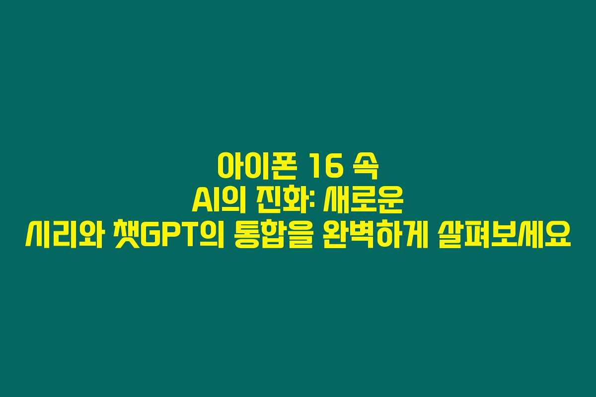 최근 아이폰 16에서 이루어진 시리와 챗GPT의 통합은 사용자에게 편리함과 효율성을 동시에 선사하고 있습니다. 이 통합을 통해 사용자들은 다양한 AI 기능을 보다 손쉽게 활용할 수 있는 기회를 가지게 되었어요.