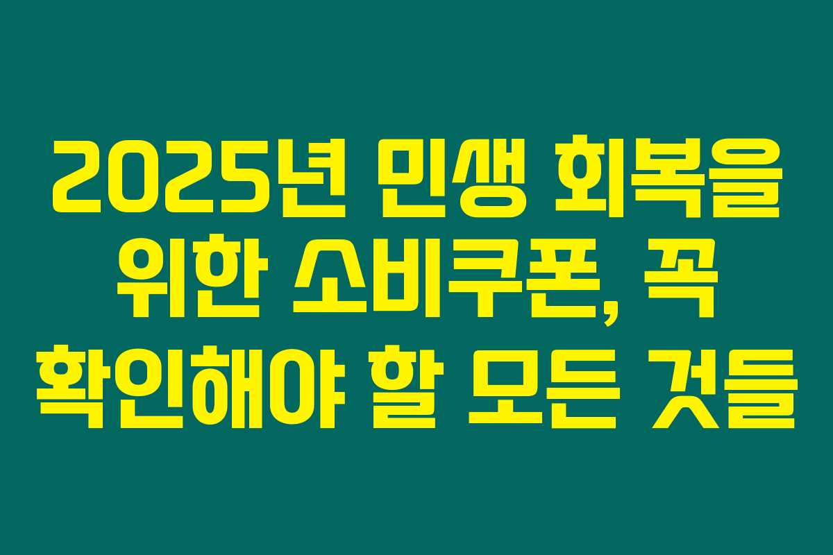제가 알아본 바로는 2025 민생회복 소비쿠폰은 경제 회복과 국민의 생활 안정을 위한 핵심적인 수단으로, 팬데믹 이후 많은 가계가 겪는 경제적 어려움을 최소화하기 위해 도입되었습니다. 소비쿠폰은 국민들의 소비를 직접적으로 유도하여 경제의 선순환 구조를 회복하는 데 기여할 수 있습니다.