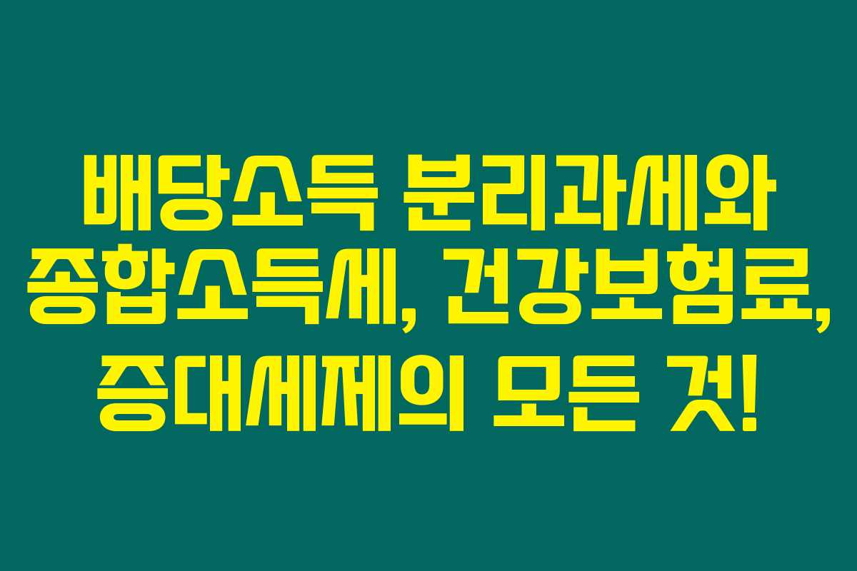 배당소득 분리과세와 종합소득세, 건강보험료, 증대세제의 모든 것!