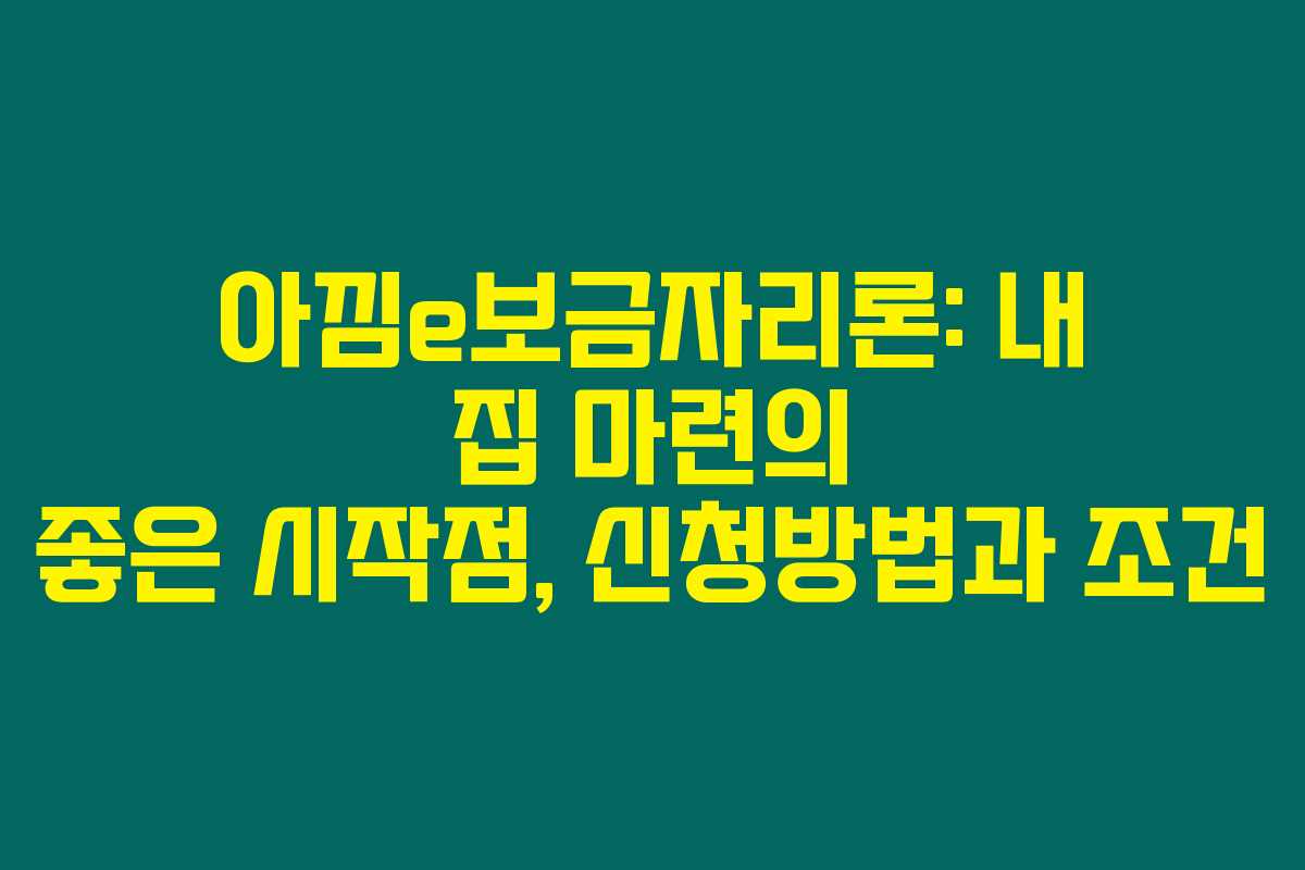 아낌e보금자리론: 내 집 마련의 좋은 시작점, 신청방법과 조건