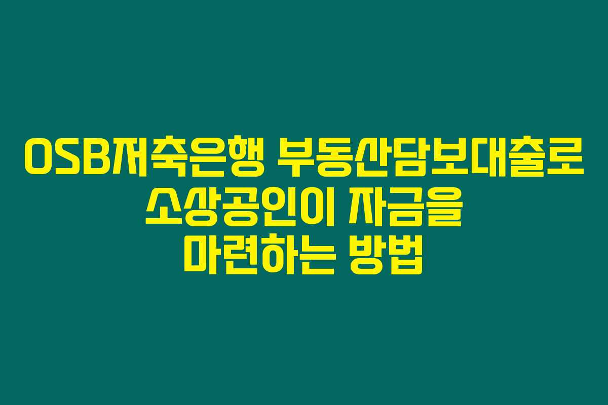 제가 직접 경험해본 결과로는, OSB저축은행의 부동산담보대출은 다양한 부동산을 담보로 할 수 있어 소상공인에게 큰 기회를 제공하는 금융 상품입니다. 이 글에서는 OSB저축은행의 부동산담보대출의 특징과 신청 방법, 유의사항에 대해 자세히 알아보도록 하겠습니다. 아래를 읽어보시면 대출 상품을 효과적으로 활용할 수 있는 방법을 알게 되실 거예요!