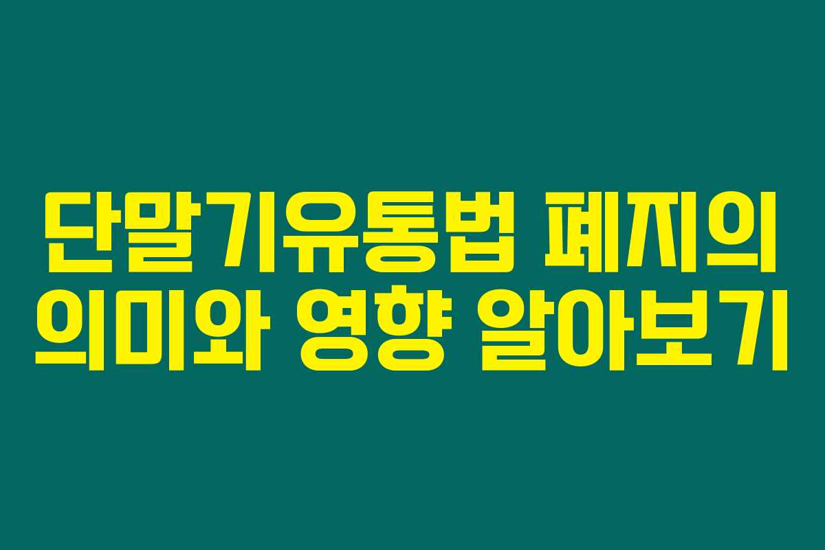 제가 직접 리서치한 바로는, 단말기유통법이 폐기될 예정이라는 뉴스는 최근에 많은 관심을 받고 있습니다. 이 법의 폐지는 소비자들에게 어떤 영향을 미칠지 여러 가지 측면에서 다양한 의견이 있습니다. 아래를 읽어보시면, 단말기유통법 폐지의 배경과 그에 따른 변화, 그리고 소비자에게 미치는 영향에 대해 자세히 알아볼 수 있을 것입니다.