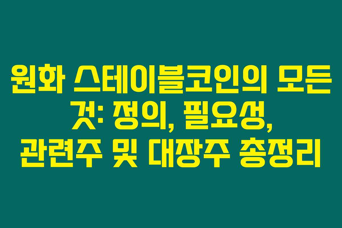 제가 직접 경험해본 결과로는, 원화 스테이블코인이란 개념은 많은 분들에게 생소하지만, 앞으로의 디지털 경제에서 매우 중요한 역할을 할 것으로 예상됩니다. 원화 스테이블코인의 뜻과 도입 이유, 관련주 및 대장주에 대한 정보가 궁금하신 분은 아래를 읽어보시면 유익할 것입니다.
