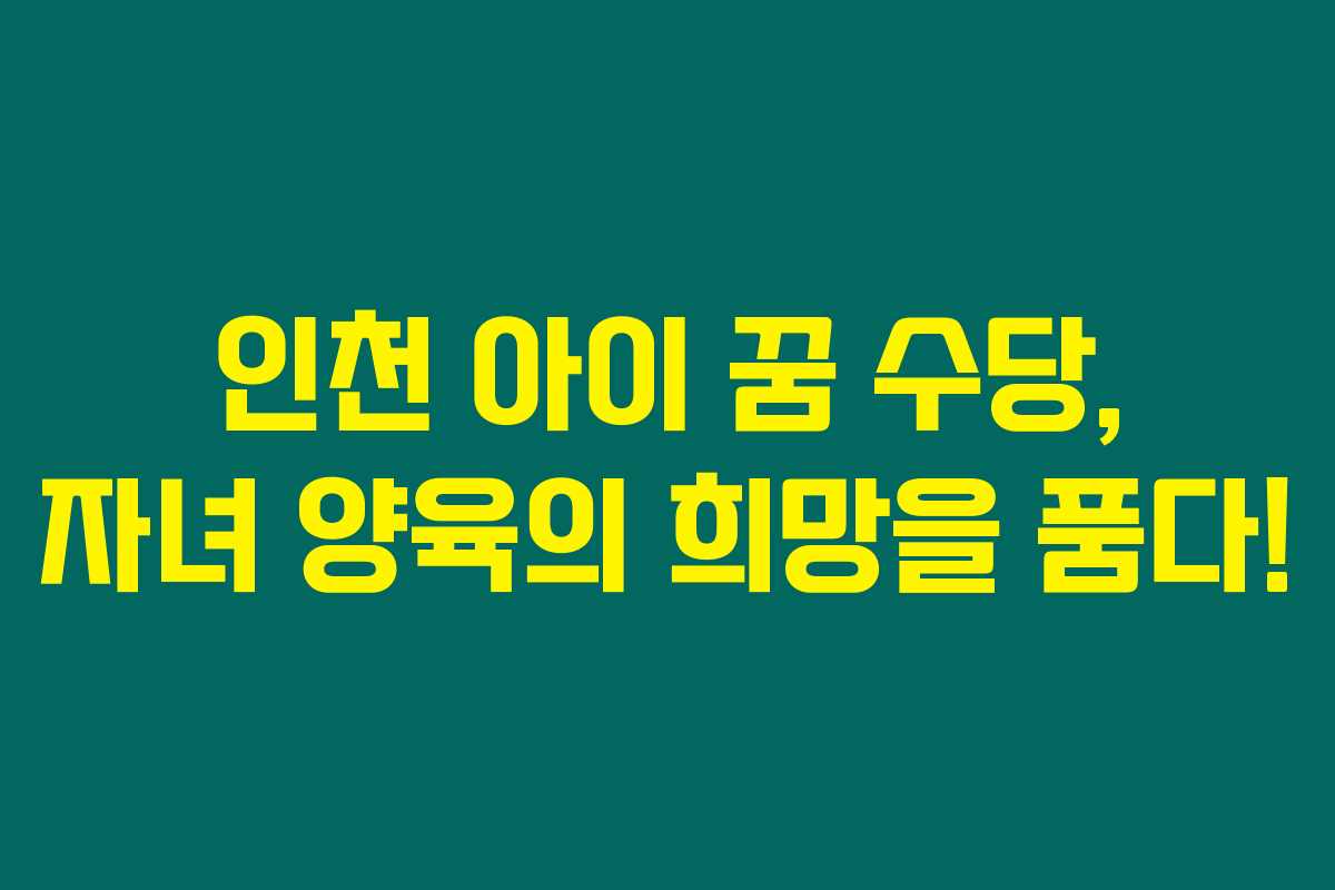인천 아이 꿈 수당, 자녀 양육의 희망을 품다!