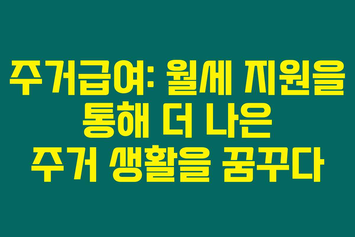 주거급여: 월세 지원을 통해 더 나은 주거 생활을 꿈꾸다
