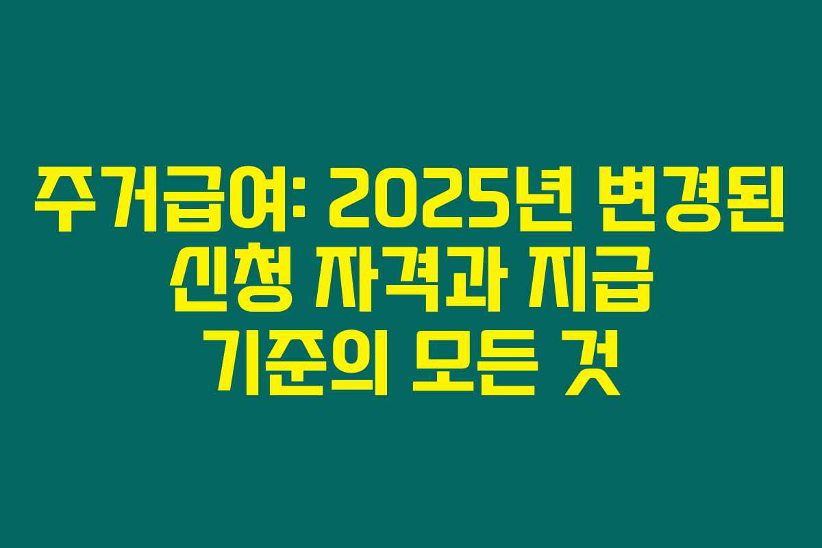 제가 직접 연구하고 분석해 본 결과로는, 주거급여에 대한 정보를 통해 저소득층 가구가 주거비 부담을 덜 수 있는 방법을 안내드립니다. 2025년에는 주거급여의 신청 자격과 지급 기준이 변경되어 더 많은 분들이 혜택을 받을 수 있게 되었으니, 자세히 알아보도록 해요!
