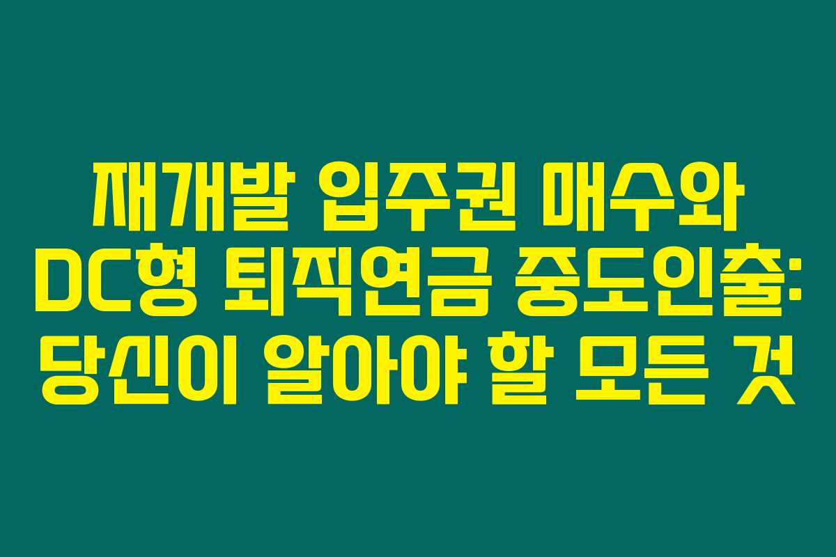 재개발 입주권과 DC형 퇴직연금을 통해 주택 마련의 기회를 잡아보세요! 항상 주의해야 할 점들을 유념하며 좋은 결정을 내리시기 바랍니다.