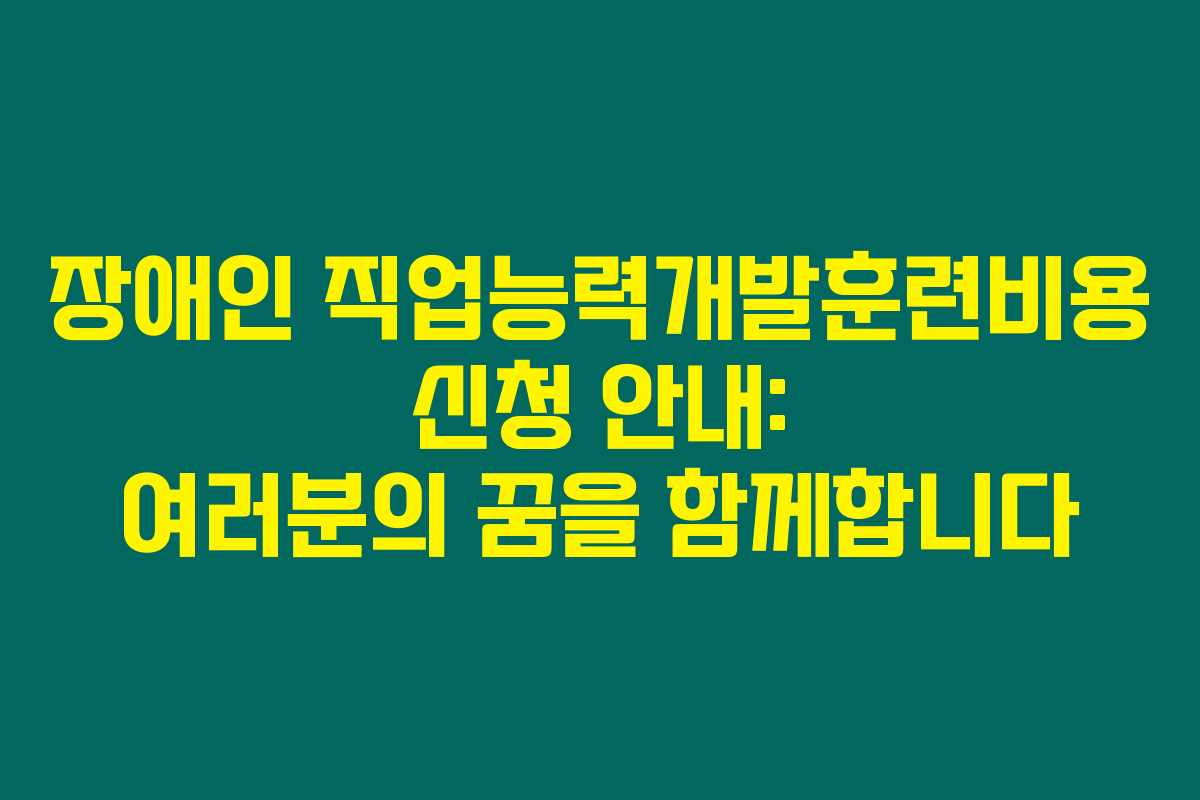 제가 직접 경험해본 결과로는, 장애인 직업능력개발훈련비용에 대해 알아보면 많은 도움이 될 것입니다. 장애인 분들이 직업능력을 개발하고 안정적인 일자리를 찾는데 필요한 지원 정보와 절차를 안내해 드립니다.