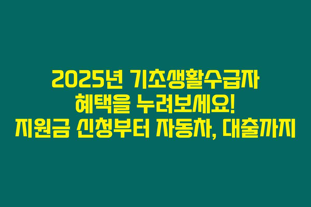 2025년 기초생활수급자 혜택을 누려보세요! 지원금 신청부터 자동차, 대출까지