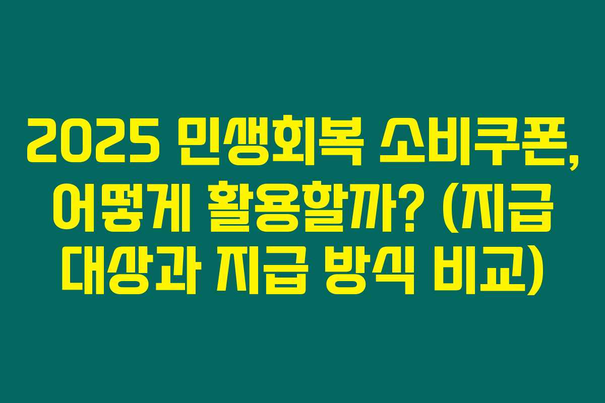 민생회복 소비쿠폰 지급 방식, 장단점 비교