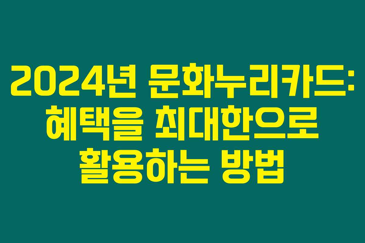 2024년 문화누리카드: 혜택을 최대한으로 활용하는 방법