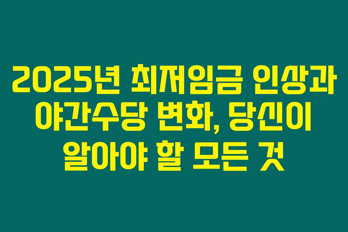2025년에 최저임금 인상과 야간수당 변경이 여러분의 생활에 긍정적인 영향을 미치길 바랍니다. 이해하지 못한 부분이 있다면 언제든지 질문해 주세요. 더 나은 근무 환경을 위해 필요한 정보는 항상 중요하답니다.