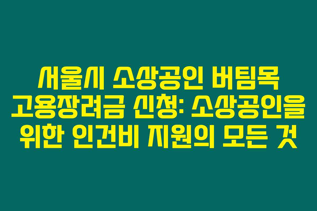 서울시 소상공인 버팀목 고용장려금 신청: 소상공인을 위한 인건비 지원의 모든 것