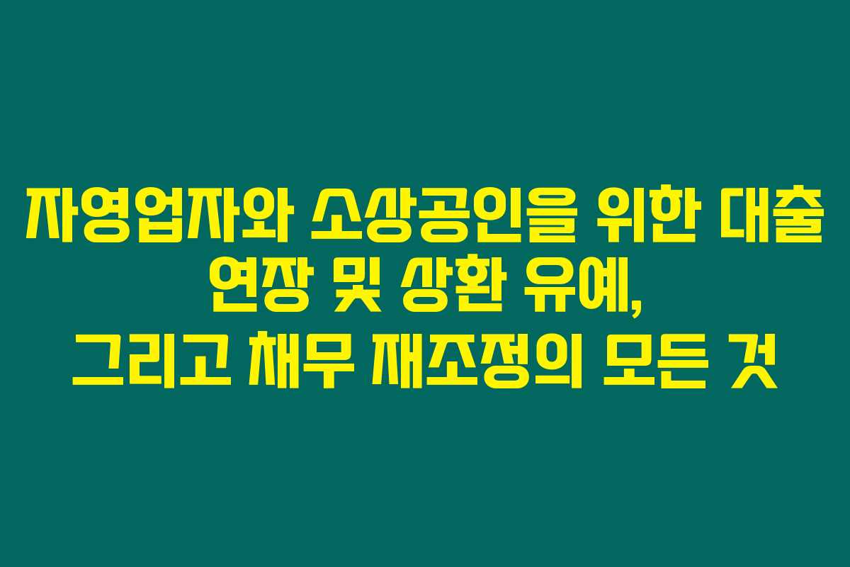 마무리하자면, 자영업자와 소상공인을 위한 대출 연장 및 상환 유예, 채무 재조정은 경제 위기 속에서 매우 중요한 지원정책입니다. 이런 지원 제도를 잘 활용하셔서 건강하게 사업을 운영해 나가시길 바랍니다.