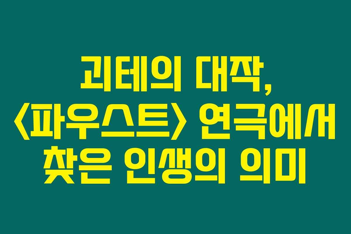 <파우스트>는 인간의 본성과 선택, 그리고 구원에 대한 이야기를 다룹니다. 이 희곡은 삶의 의미와 존재에 대한 근본적인 질문을 던집니다.