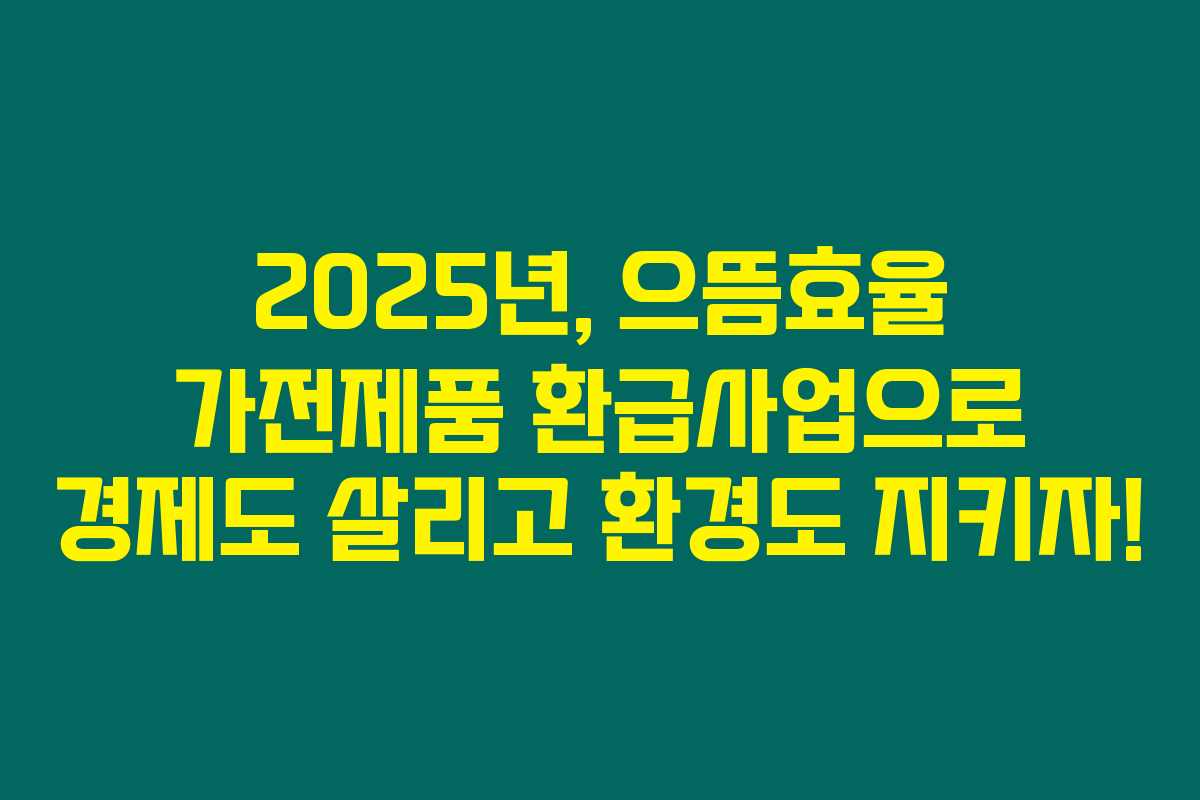 2025년부터 시작되는 으뜸효율 가전제품 환급사업은 우리 가정에서 사용하는 가전제품을 더욱 효율적이고 환경 친화적으로 바꾸는 기회입니다. 아래를 읽어보시면, 환급사업의 내용과 혜택에 대해 알차게 정리된 정보를 확인할 수 있어요.