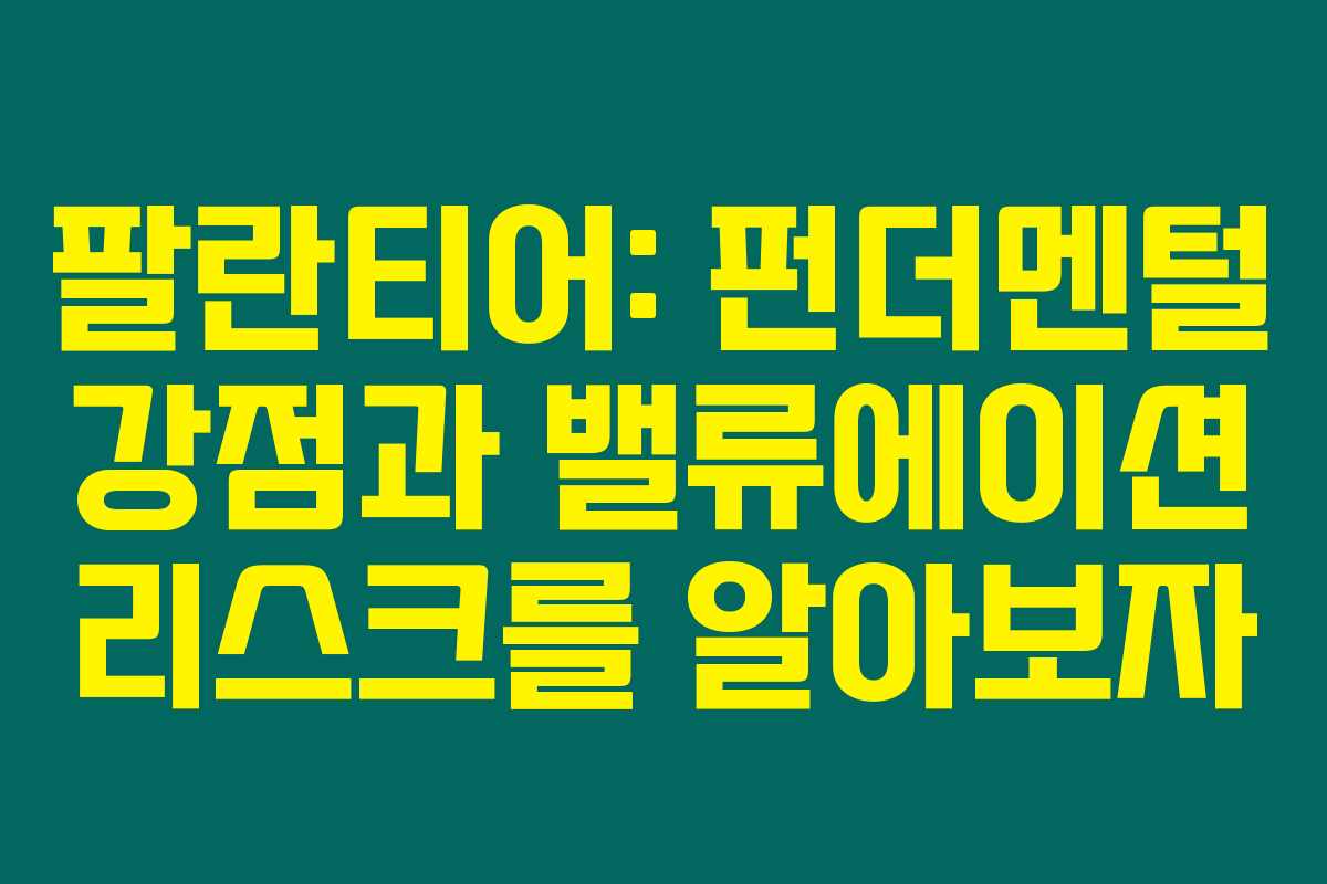 제가 직접 체크해본 바로는, 팔란티어는 독특한 비즈니스 모델과 강력한 데이터 분석 기술로 많은 관심을 받고 있는 기업입니다. 하지만 뛰어난 성장성을 지니고 있음에도 불구하고, 현재의 밸류에이션은 다소 높은 평가를 받고 있어 리스크가 존재합니다. 아래를 읽어보시면 팔란티어의 펀더멘털 강점과 밸류에이션 리스크를 심층적으로 분석한 내용이 담겨 있습니다.