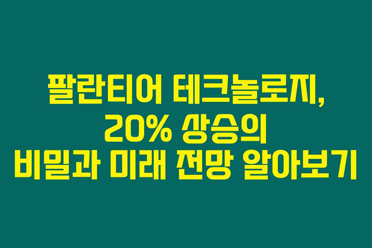 팔란티어 테크놀로지의 주가는 최근 실적 발표 후 20% 급등했어요. 이는 기업이 발표한 긍정적인 실적과 향후 성장 전망 때문입니다.