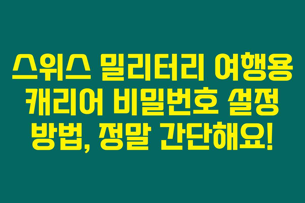 제가 직접 사용해본 바에 의하면, 스위스 밀리터리 여행용 캐리어는 품질과 가격이 뛰어난 제품이에요. 많은 사람들이 이 캐리어를 선택하는 이유도 여기에 있습니다.하지만, 몇 년을 사용하면서 비밀번호를 기본값인 0, 0, 0으로 두고 다녔더니, 짐을 보호하기 위해 비밀번호를 변경해야겠다는 생각이 들더라고요. 그래서 오늘은 스위스 밀리터리 여행용 캐리어 비밀번호 설정 방법에 대해서 자세히 알아보도록 하겠습니다. 아래를 읽어보시면 아마 많은 도움이 되실 거예요.
