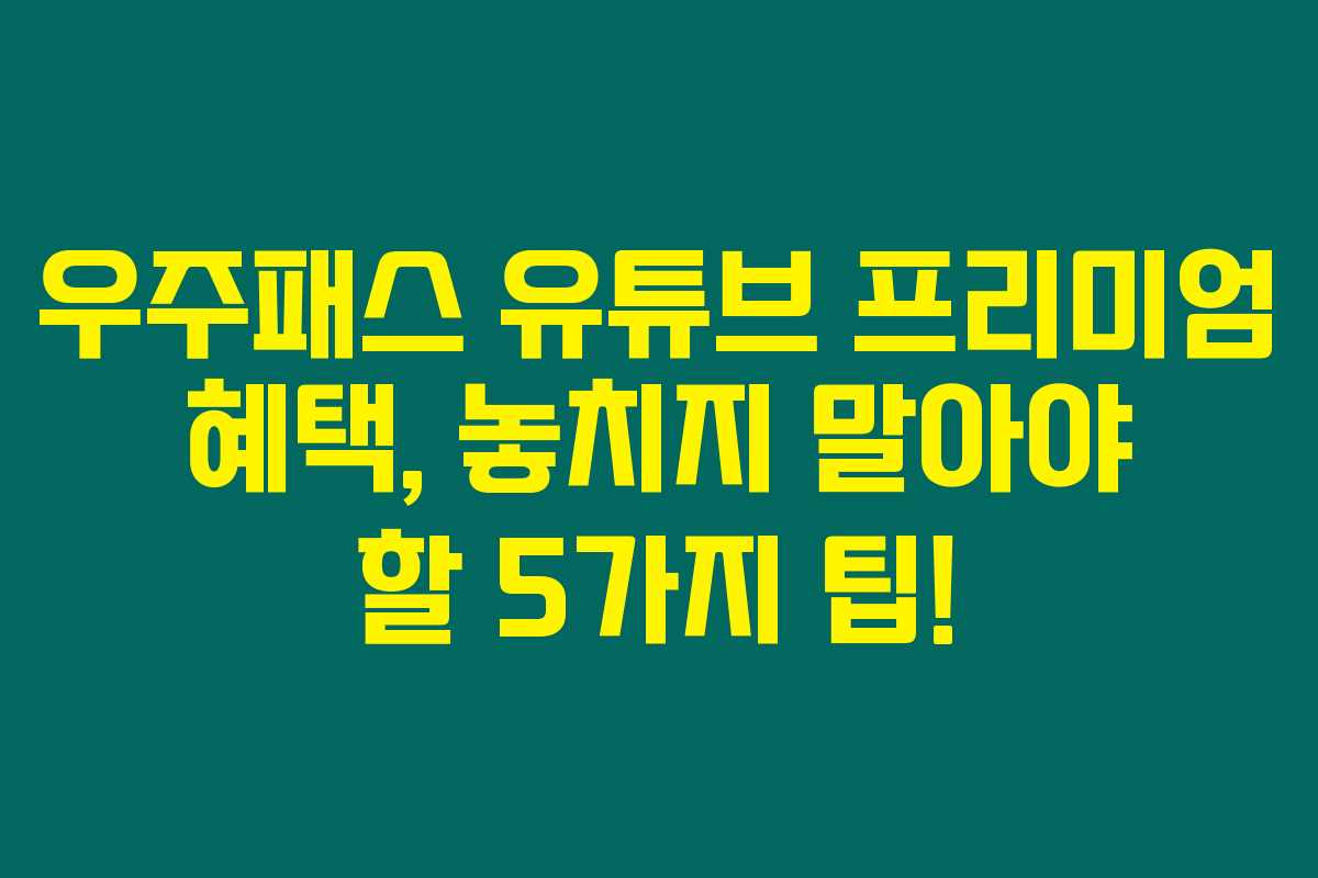 최종적으로, 우주패스 유튜브 프리미엄 할인 혜택은 여러분이 콘텐츠 소비를 더욱 풍부하고 즐거운 경험으로 만들어 줄 서비스입니다. 이 글에서 소개한 다양한 정보와 팁을 통해 여러분도 쉽게 이 혜택을 활용해보세요. 사람들 사이에서 이득이 되는 정보는 나누는 것이 좋겠죠? 다음에도 더 좋은 정보로 찾아올게요!