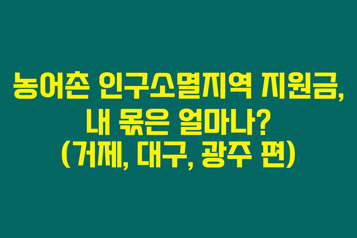 농어촌 인구소멸지역 지원금, 내 몫은 얼마나? (거제, 대구, 광주 편)