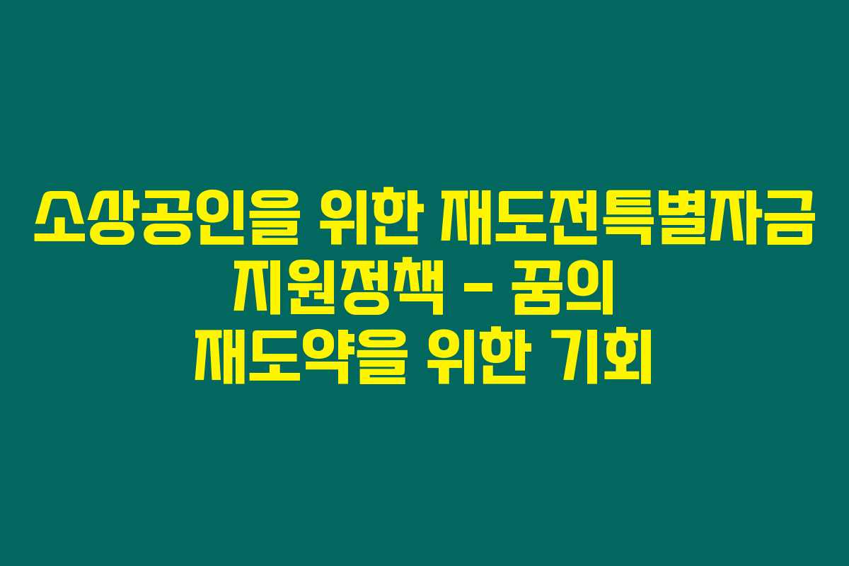 재도전특별자금은 소상공인이 다시 한 번 날개를 펴고 자신들의 꿈을 이룰 수 있도록 도와주는 소중한 자원입니다. 신청 자격이 되는 분들은 이 기회를 통해 새로운 시작을 다짐해 보세요. 힘든 상황이지만, 여러분의 노력과 정부의 지원이 어우러져 밝은 미래로 나아가기를 진심으로 바랍니다.