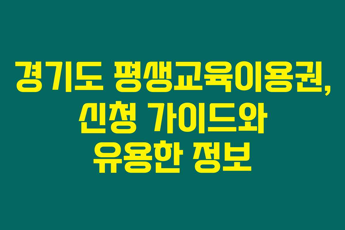 경기도 평생교육이용권, 신청 가이드와 유용한 정보