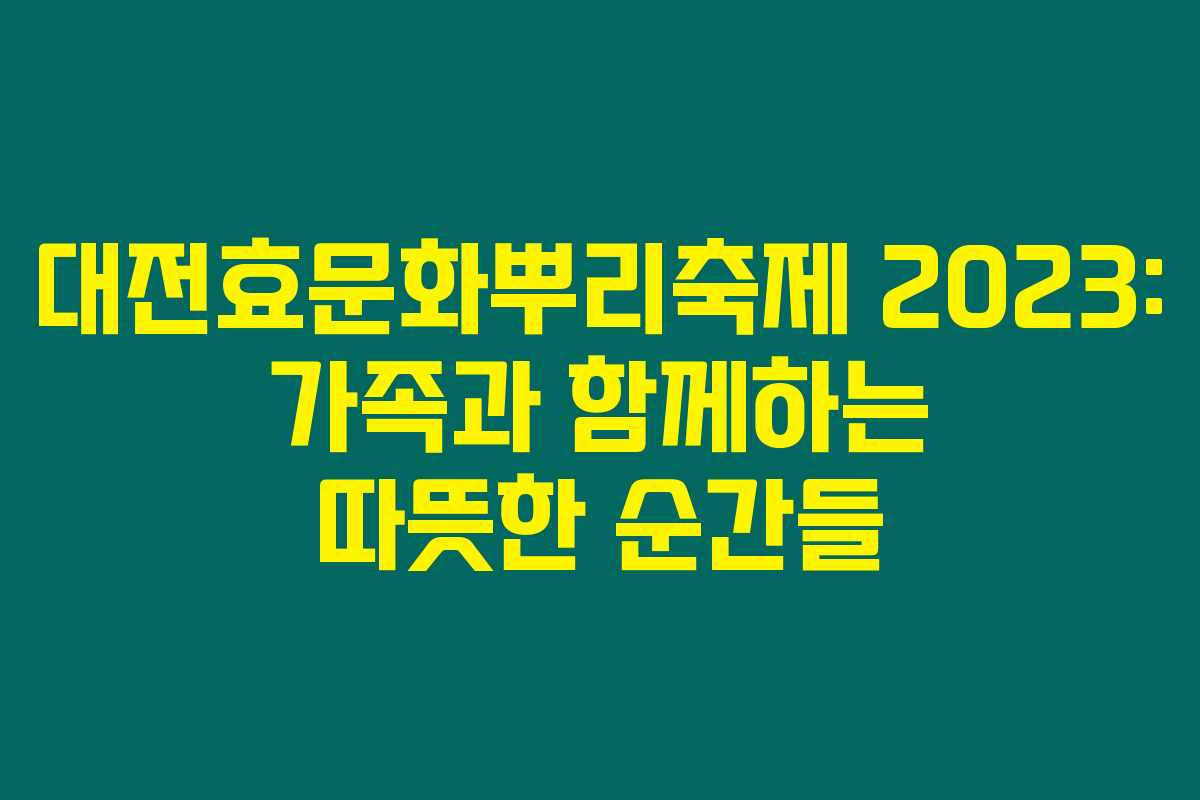 2023년 10월 13일부터 15일까지 대전에서 열리는 대전효문화뿌리축제는 가족과 함께 소중한 추억을 만들 수 있는 기회를 제공합니다. 뿌리공원과 원도심 일대에서 펼쳐지는 이 축제는 효의 가치를 배우고, 다양한 문화 체험을 통해 가족의 정을 느낄 수 있는 특별한 자리입니다. 아래를 읽어보시면 축제의 매력과 구체적인 행사 내용, 그리고 효문화의 소중함을 함께 느끼실 수 있을 것입니다.