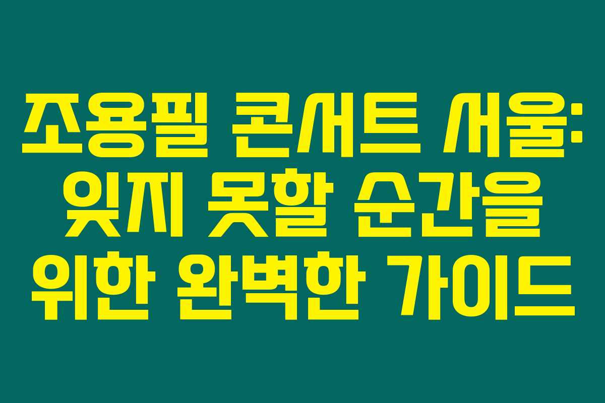 2023년 조용필 서울 콘서트가 얼마 남지 않았습니다. 많은 팬들이 그의 공연을 기다리고 있을 텐데요. 아래를 읽어보시면 서울 콘서트의 일정, 가격, 예매 방법에 대한 자세한 정보가 정리되어 있으니 놓치지 마세요!