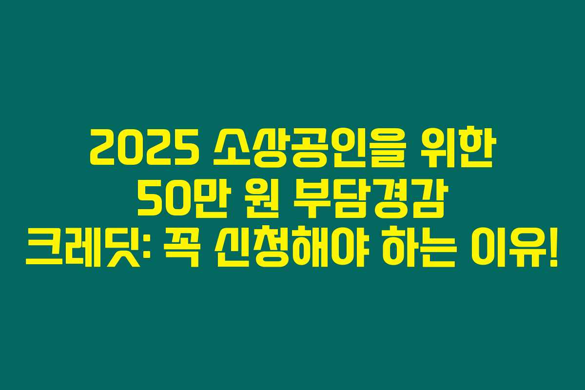 2025년 소상공인 50만 원 ‘부담경감 크레딧’을 알고 계신가요? 만약 아직 준비 중이라면, 꼭 확인하고 신청해야 할 혜택이에요! 정부는 소상공인을 위한 특별한 지원 금액을 마련했는데요. 공무원들이 국민의 삶을 개선하기 위해 노력하는 만큼, 여러분께도 큰 도움이 될 거예요. 아래를 읽어보시면 이 50만 원의 크레딧을 이용해 궁극적으로 어떻게 부담을 덜 수 있는지 알아보실 수 있습니다!