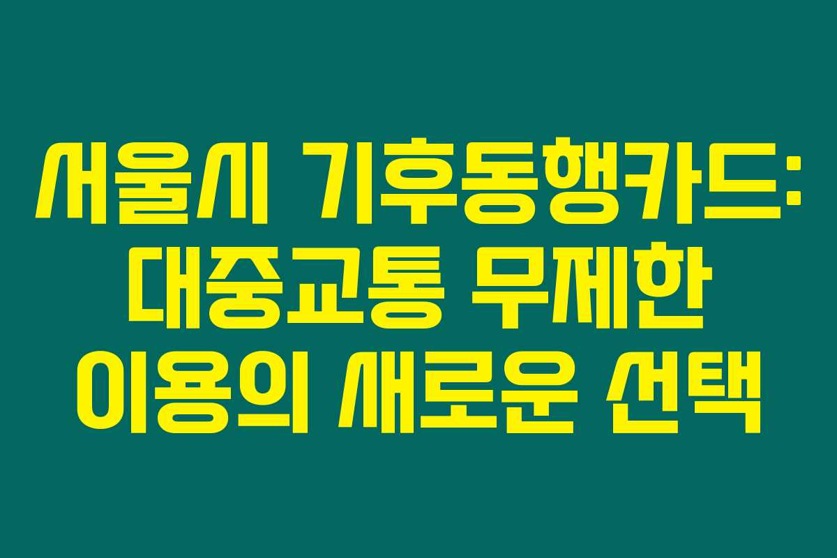 서울시 기후동행카드: 대중교통 무제한 이용의 새로운 선택