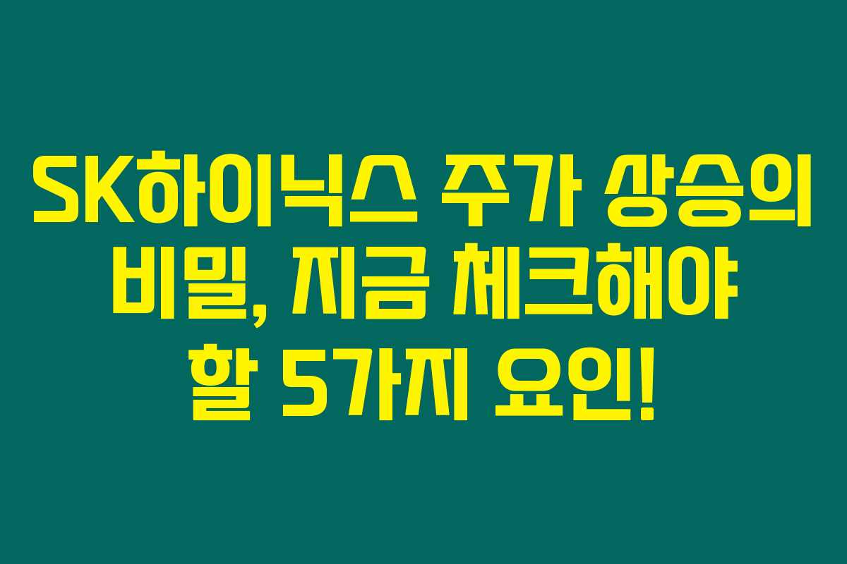 요즘 SK하이닉스 주가가 급등하고 있다는 소식 들어보셨나요? 주식 투자에 관심이 많다면, SK하이닉스 주가가 왜 이렇게 상승한 것인지 그 이유를 꼭 알고 있어야 합니다. 아래를 읽어보시면 이 회사의 주가 상승 요인과 앞으로의 전망에 대해 깊이 있게 이해하실 수 있을 거예요!