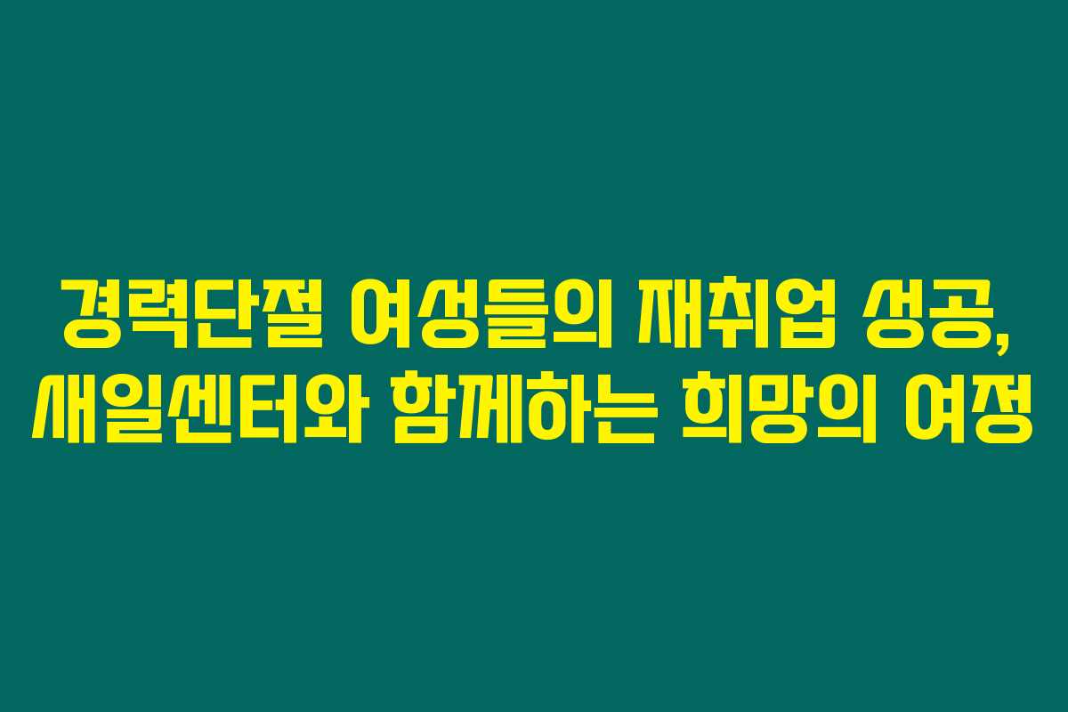 경력단절 여성들의 재취업 성공, 새일센터와 함께하는 희망의 여정