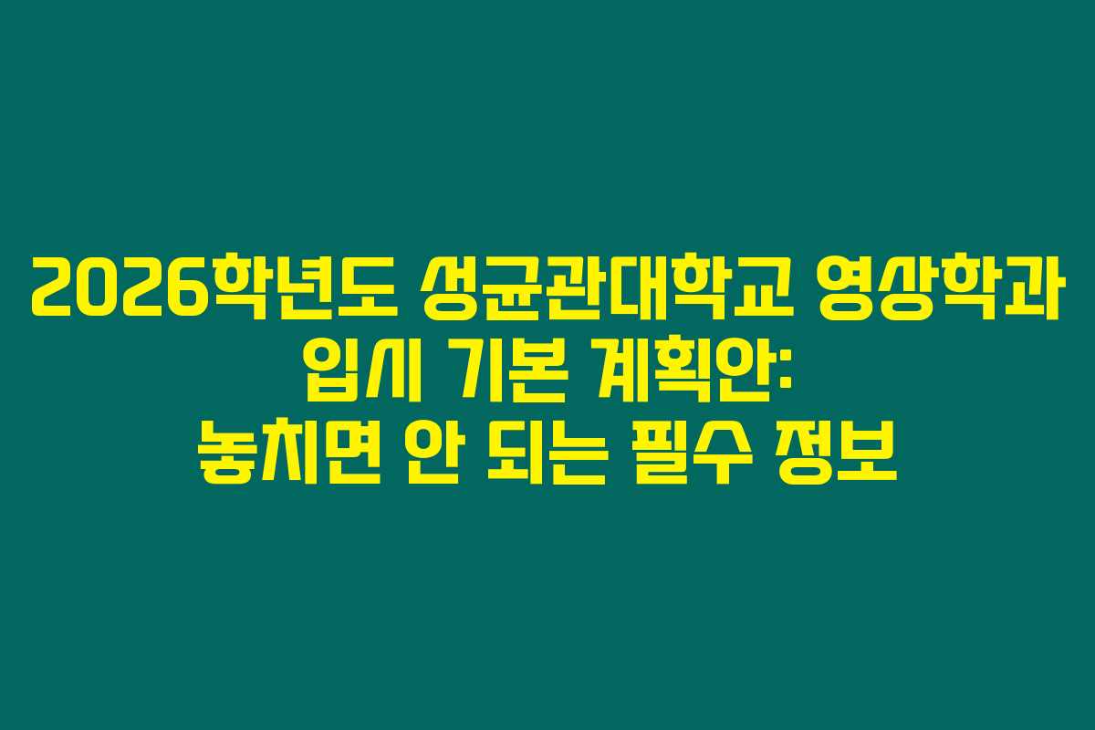 2026학년도 성균관대학교 영상학과 입시 기본 계획안: 놓치면 안 되는 필수 정보