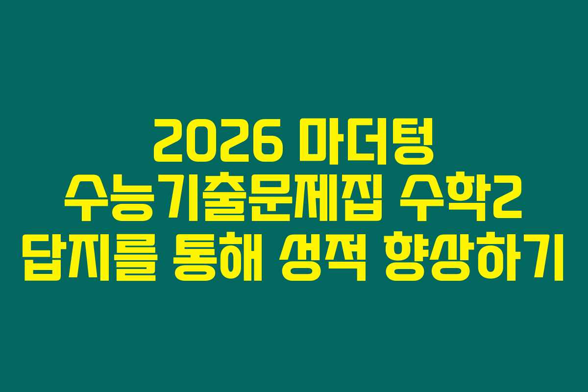 2026 마더텅 수능기출문제집 수학2 답지를 찾고 계신가요? 만약 학습에 대한 고민이 깊으시다면 이 기회에 꼭 확인해보셔야 해요. 수능 기출문제집의 정답 및 해설을 통해 학습의 방향을 잡고 성적을 높이는 방법에 대해 자세히 알아보겠습니다.