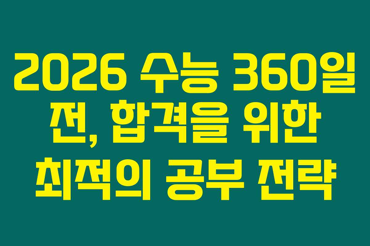 2026 수능 360일 전, 합격을 위한 최적의 공부 전략
