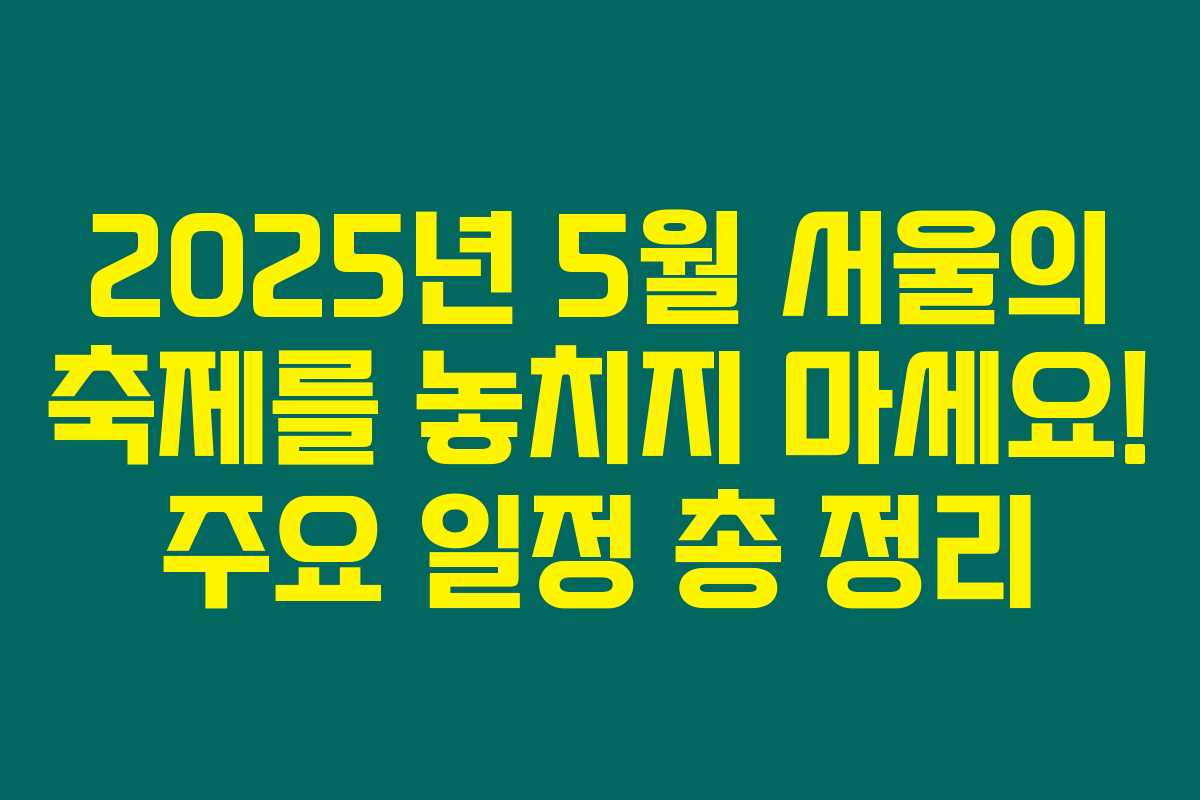 2025년 5월 서울에서 열리는 다양한 축제를 알아보고 계신가요? 서울의 봄을 만끽할 수 있는 축제로 가득 찬 5월, 서울의 주요 축제 일정을 아래를 읽어보시면 확인하실 수 있습니다. 놓치지 않고 즐길 수 있는 방법을 알아보세요.